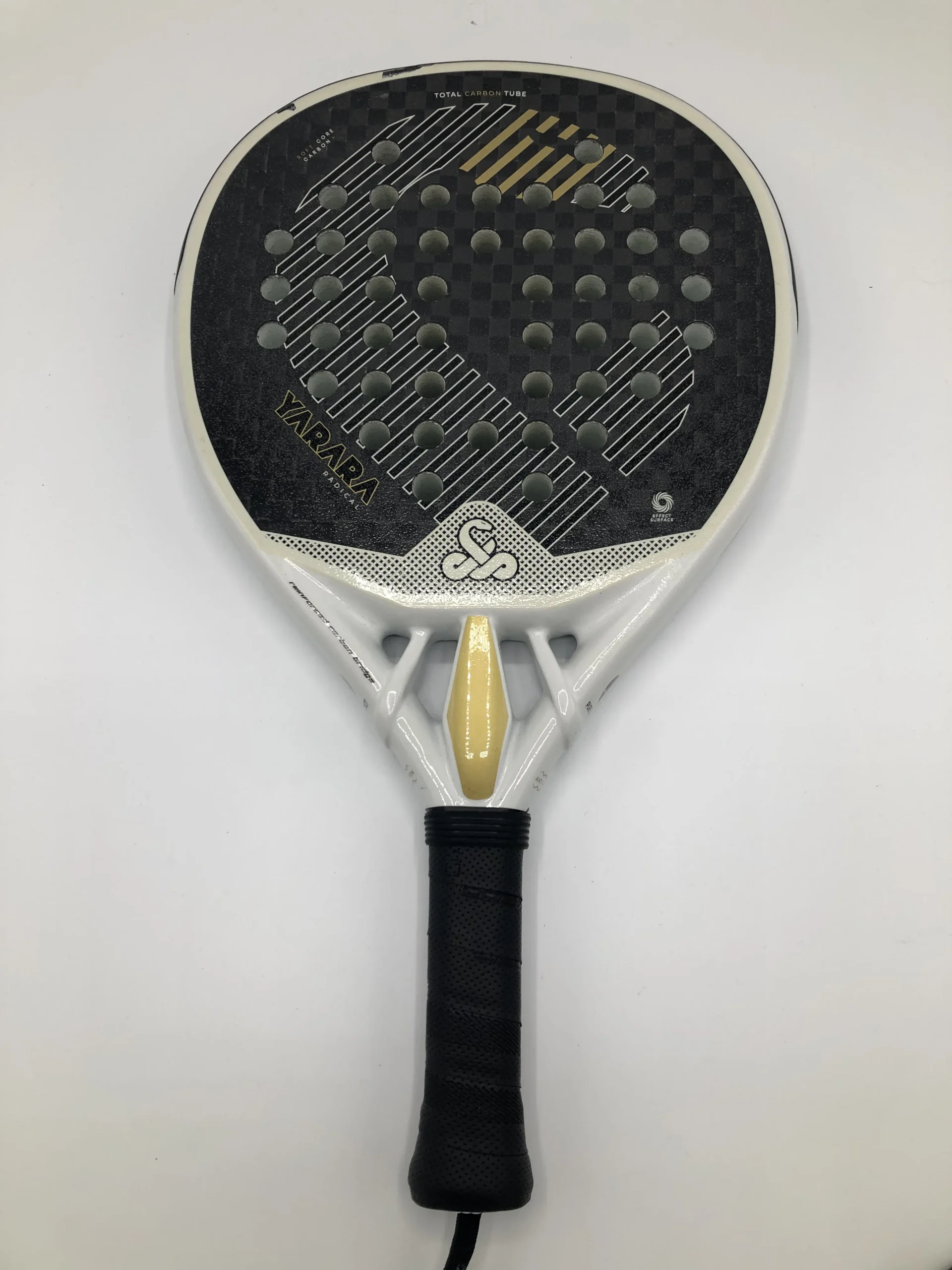Víbora Yarara Radical – krachtig padelracket met diamantvorm en hoge balans voor maximale smashpower. Voorzien van carbon slagvlak voor stijfheid en precisie en een EVA-kern met hoge dichtheid voor directe en explosieve baloutput. Gericht op aanvallende spelers die druk willen zetten aan het net. In goede staat.